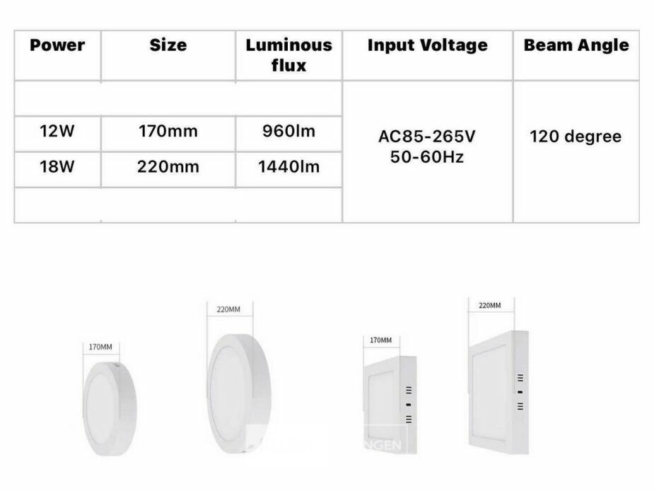 Led-paneel - ronde opbouwmontage - 12w - 6500k - koud wit (x10)