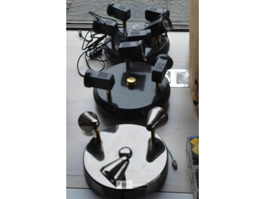 5 retro lampen en partij hallogeen lampenhouders