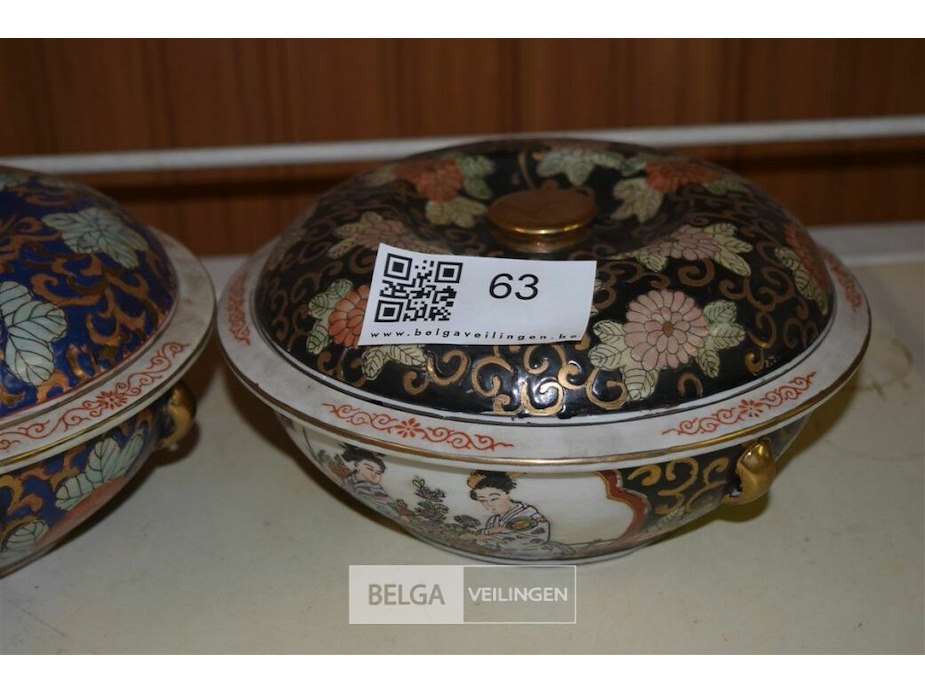 2 porselijnen soep terrine met deksel chinese stijl