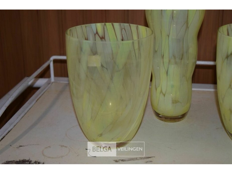 3 glazen vaasjes met geimarerd geelgroen patroon