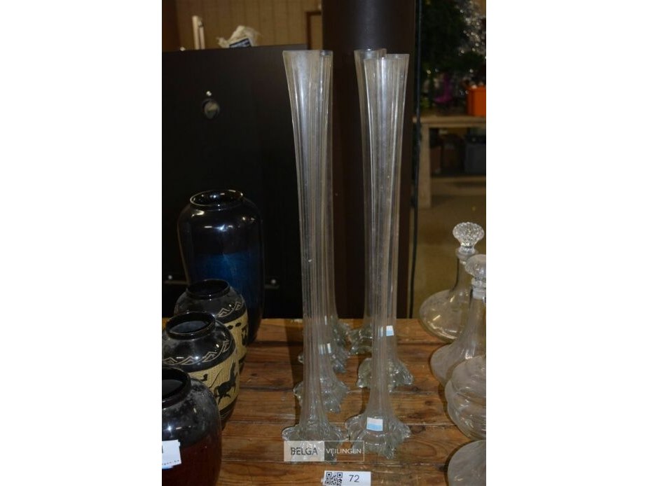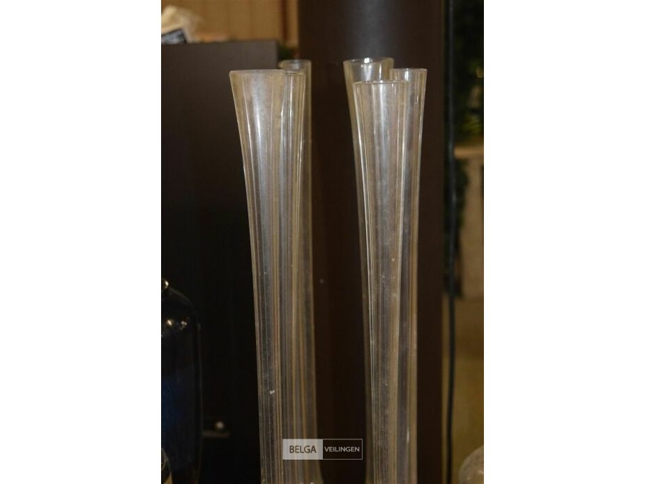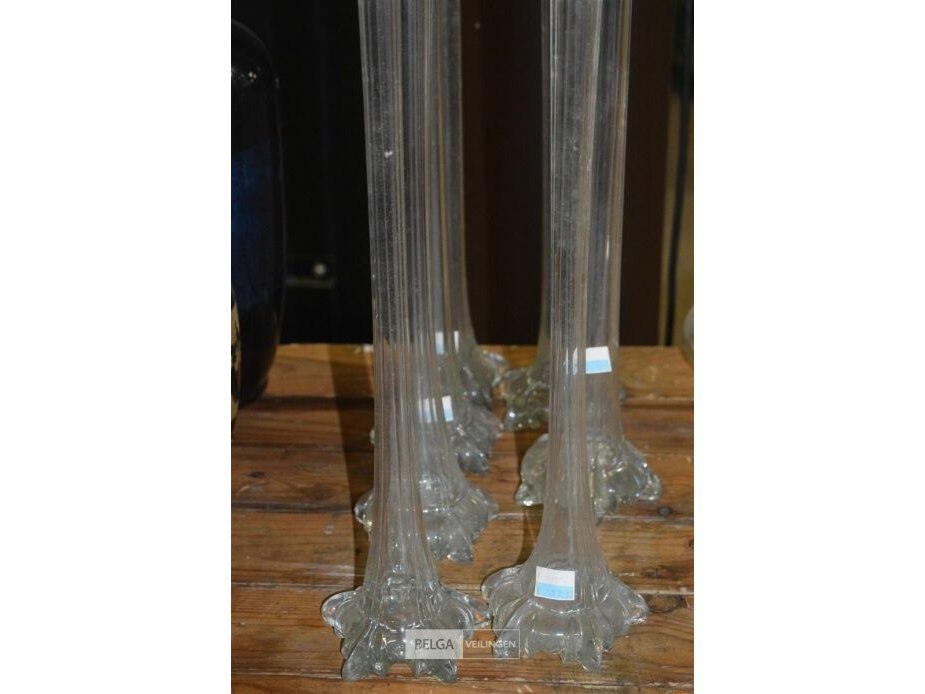 6 glazen vaasjes met lange steel en trompetvormige openig