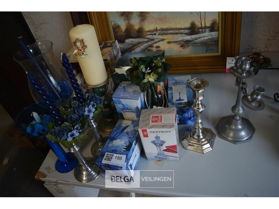 Inhoud tafel div kandelaars en vaasjes