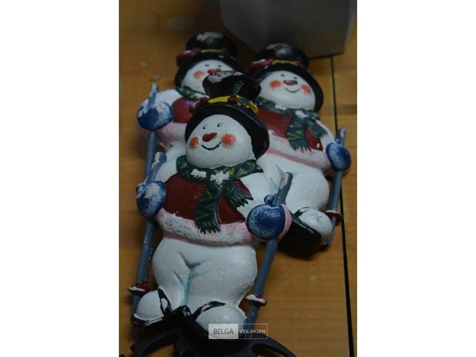 3 gietijzeren sneeuwman en onderlegger