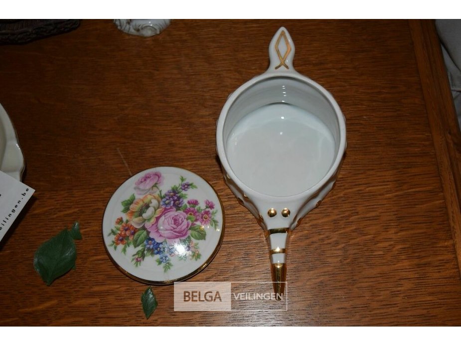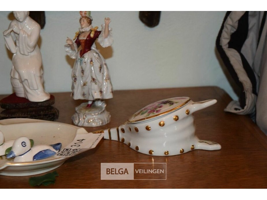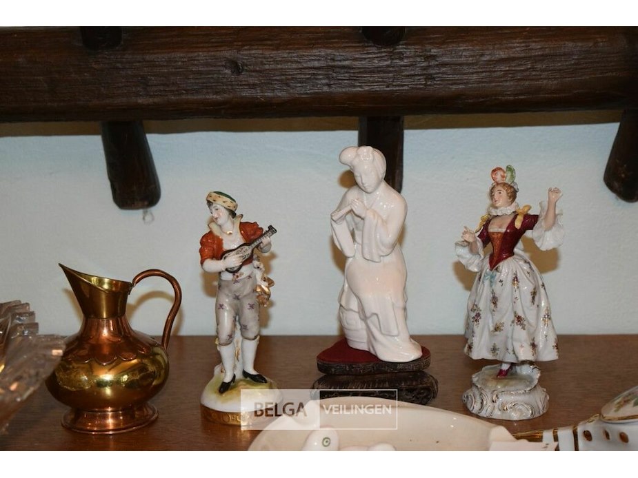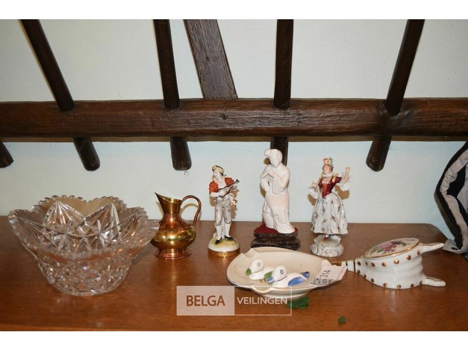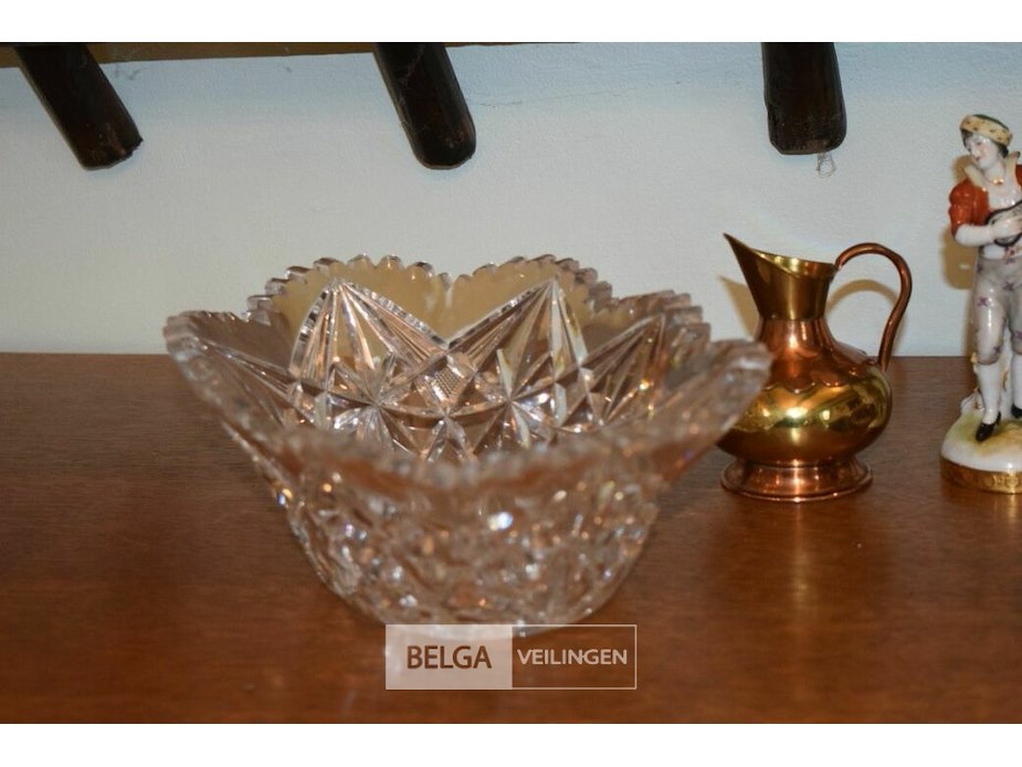 Div porselijnen deco en kristallen kom, koperen vaasje