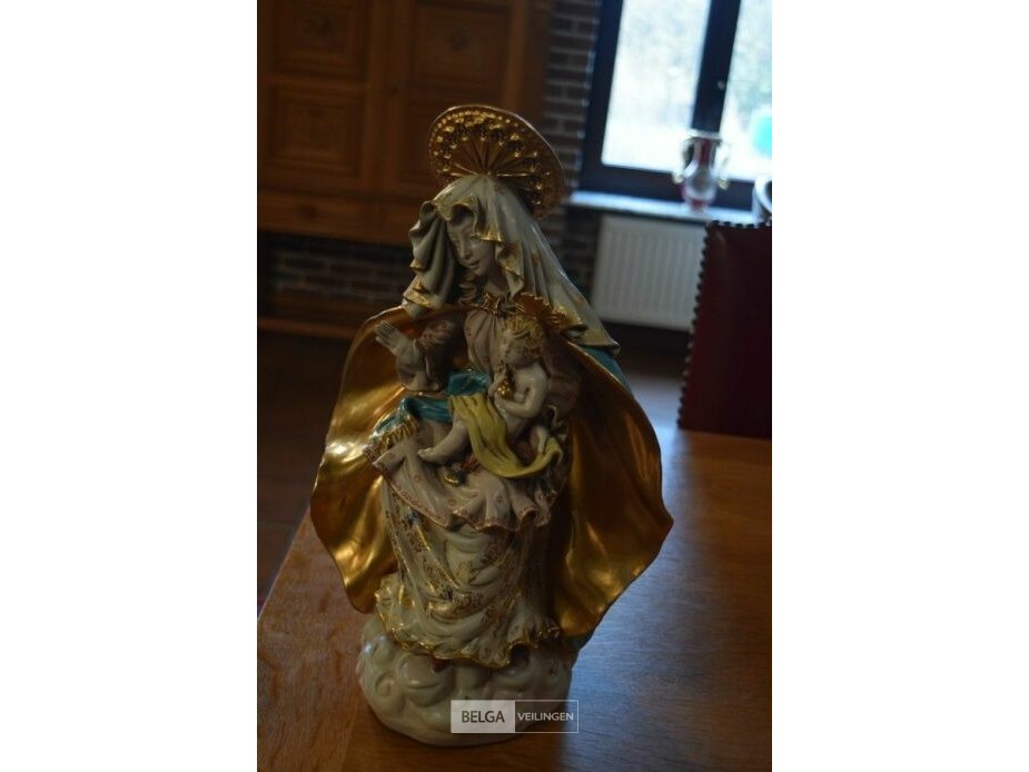 Polychroom terracota beeldje madonna met kind