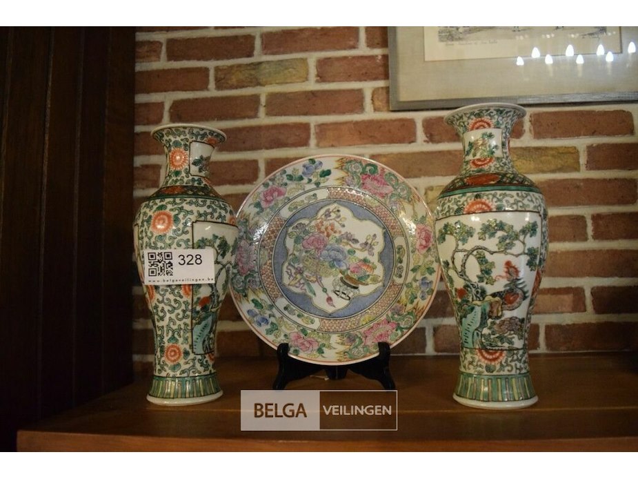 2 chinese vaasjes en bord