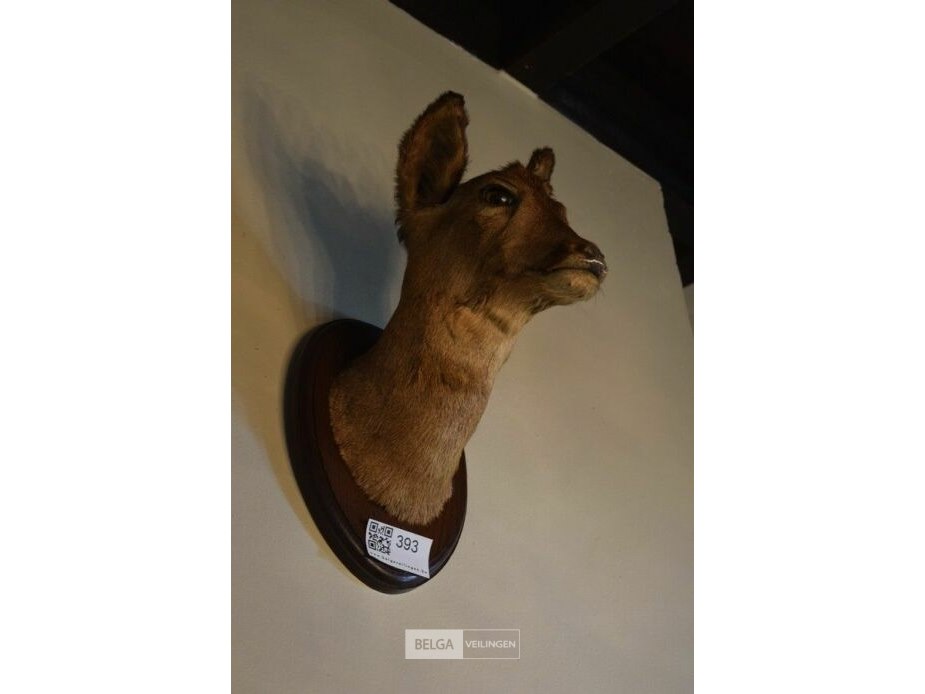 Reebokhoofd op houten schild