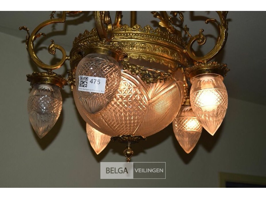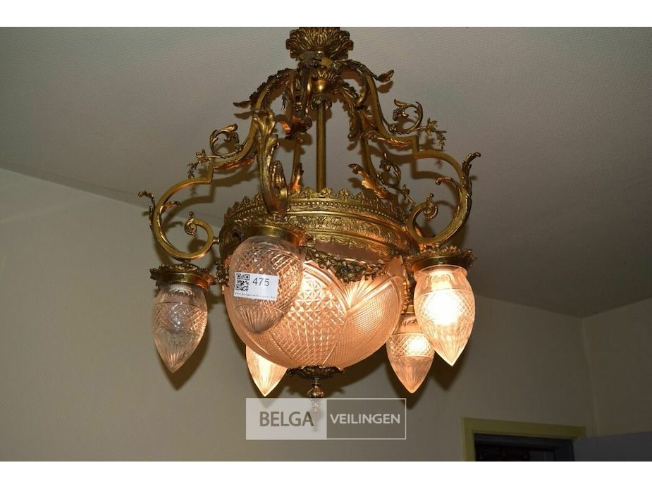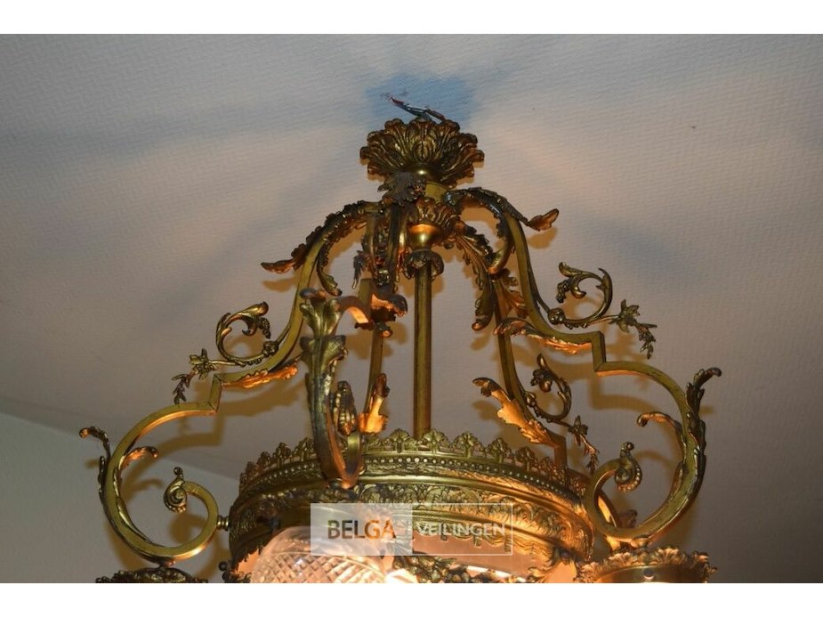 Bronzen kroonluchter met geetse glazen