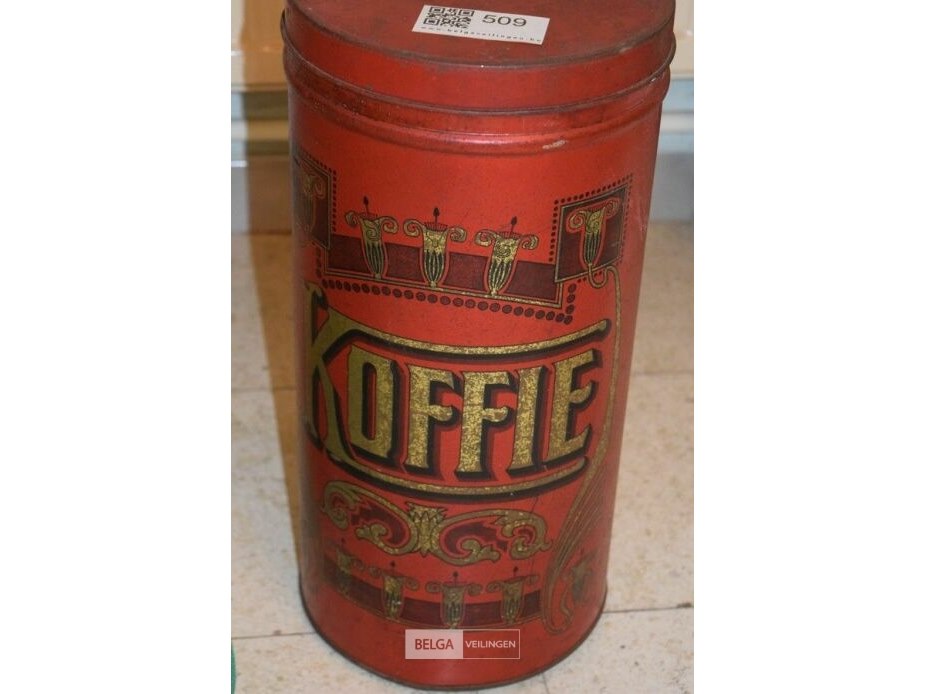 Antieke ijzeren koffiedoos met koffiebonen