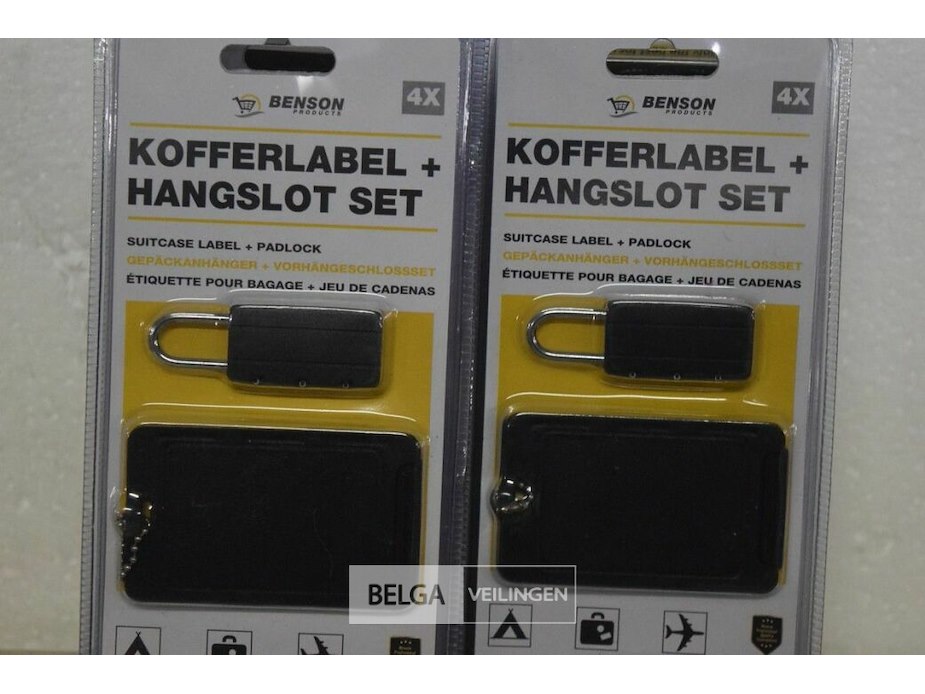 10 kofferlabels+hangslotset