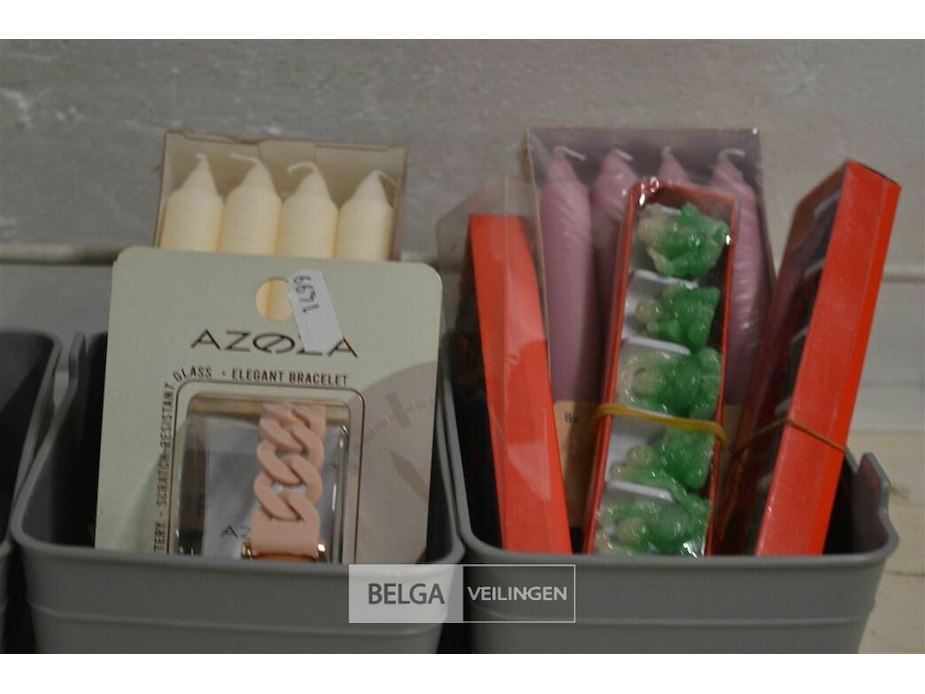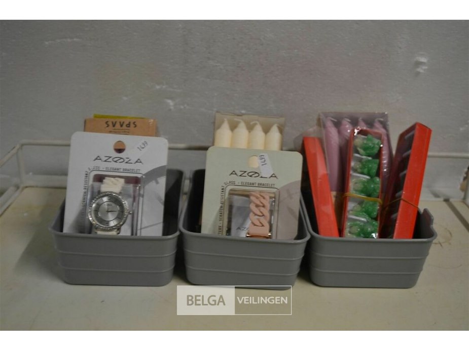 Inhoud 3 bakjes (kaarsen, boeddha beeldjes en horloges)