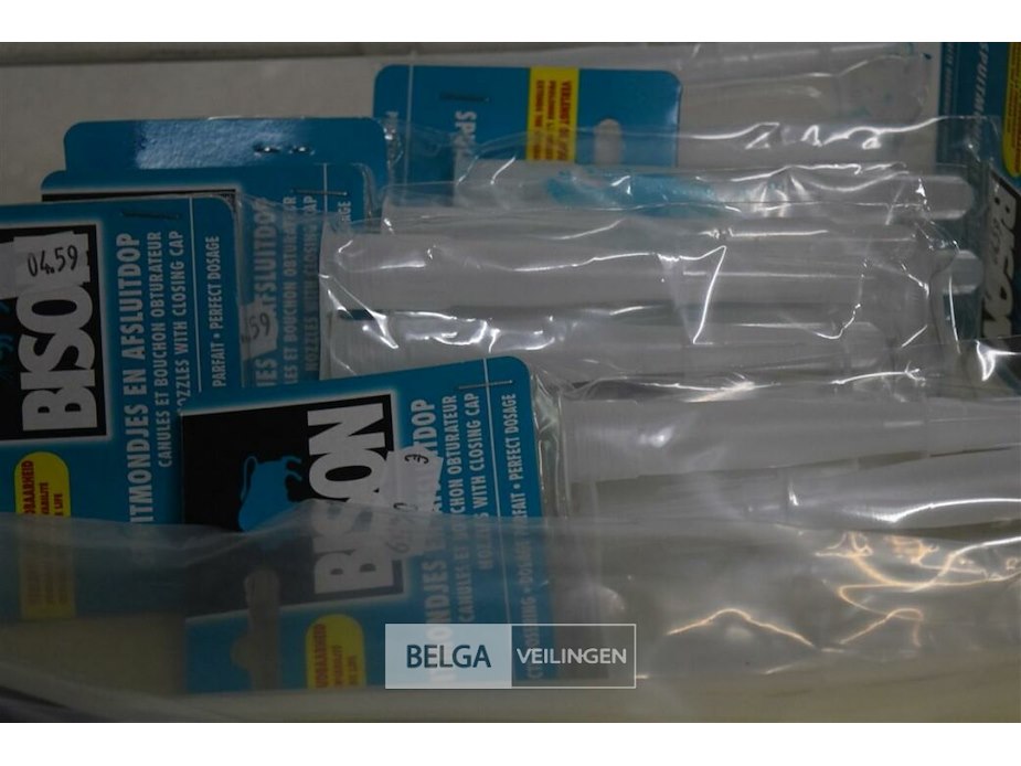 6 spuitmondjes en afsluitdop en 4 pakjes kabelbinder