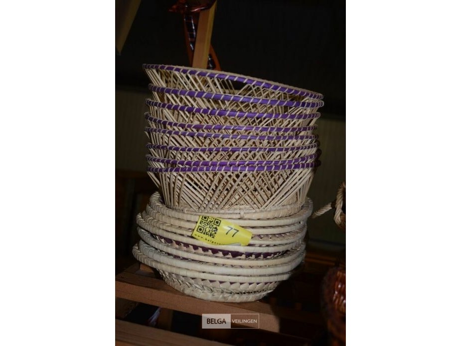 7x rieten mandjes en 7 rieten schotels