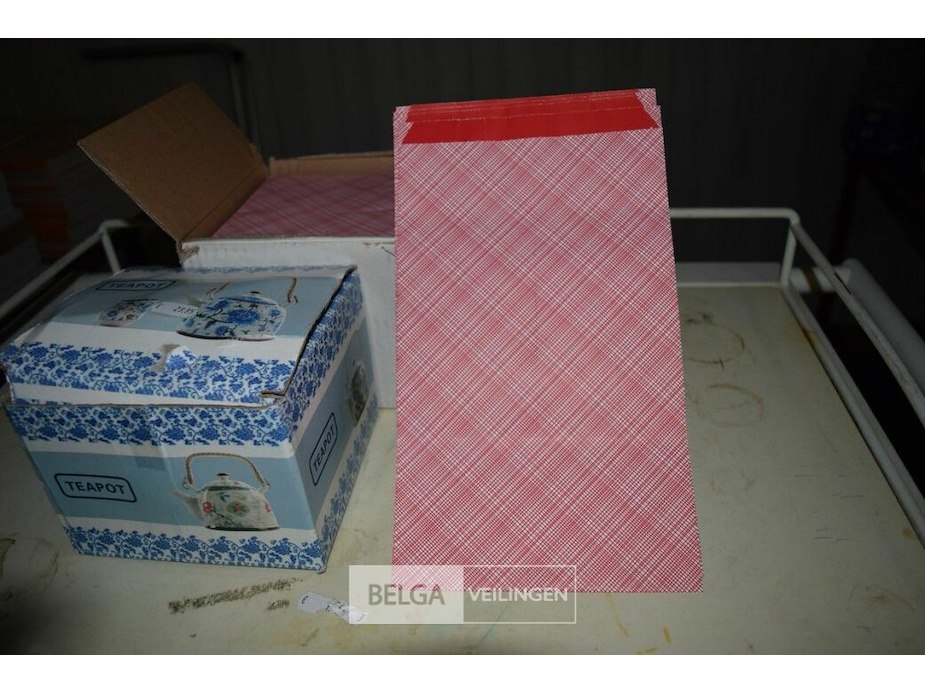 Theepot en doos papieren inpakzakjes