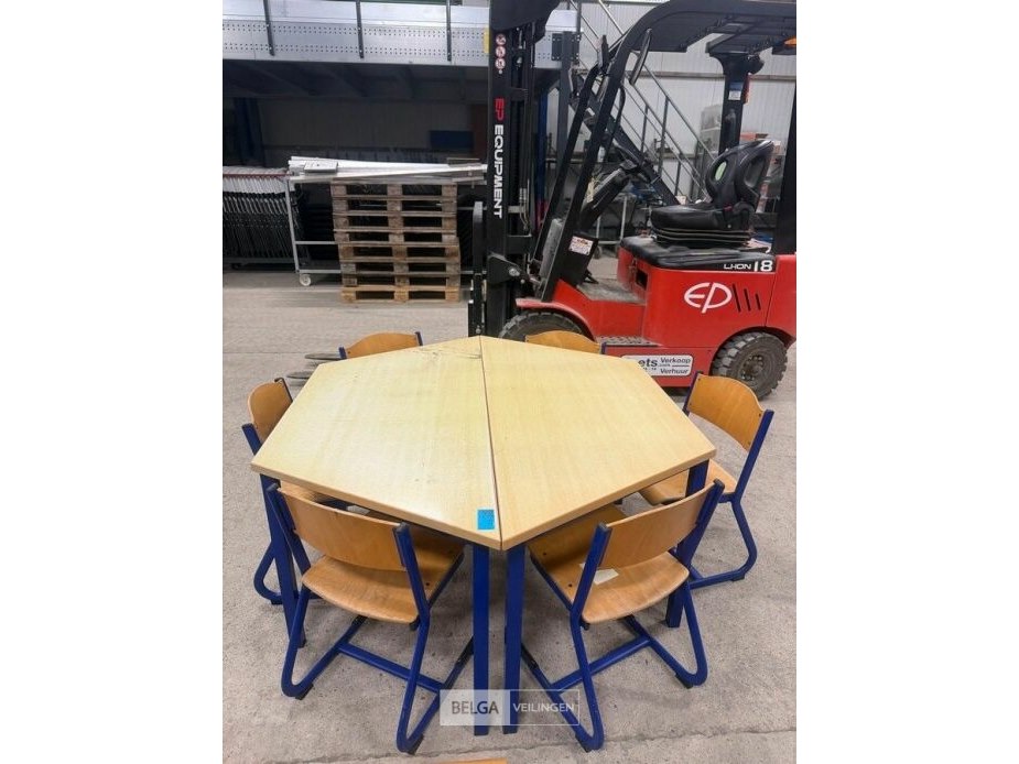Zeshoekige tafel + 6 stoelen