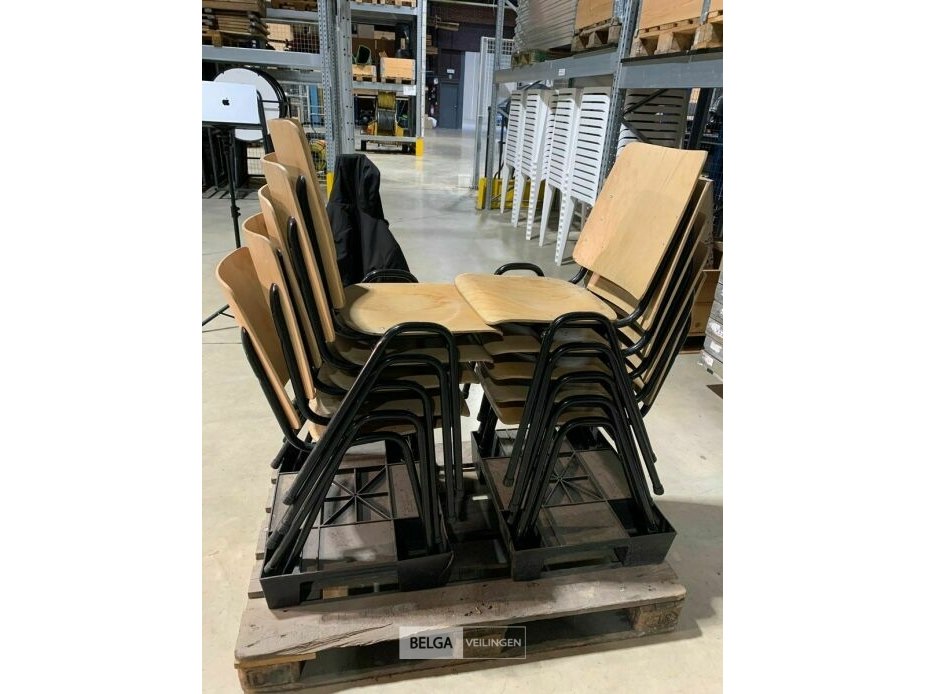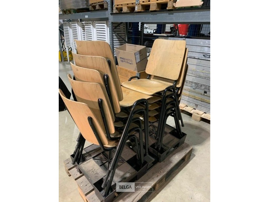 Partij houten stapelstoelen ongeveer 40 stuks.