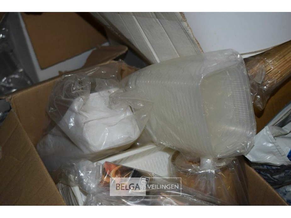 Inhoud pallet partij div inpakmateriaal, borden, bekers, bestek