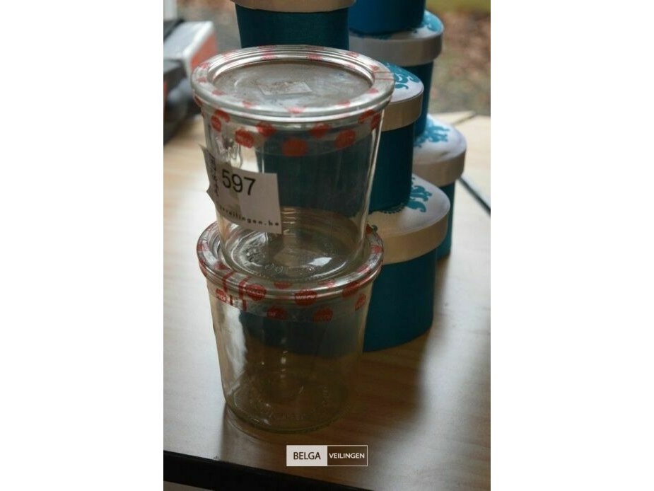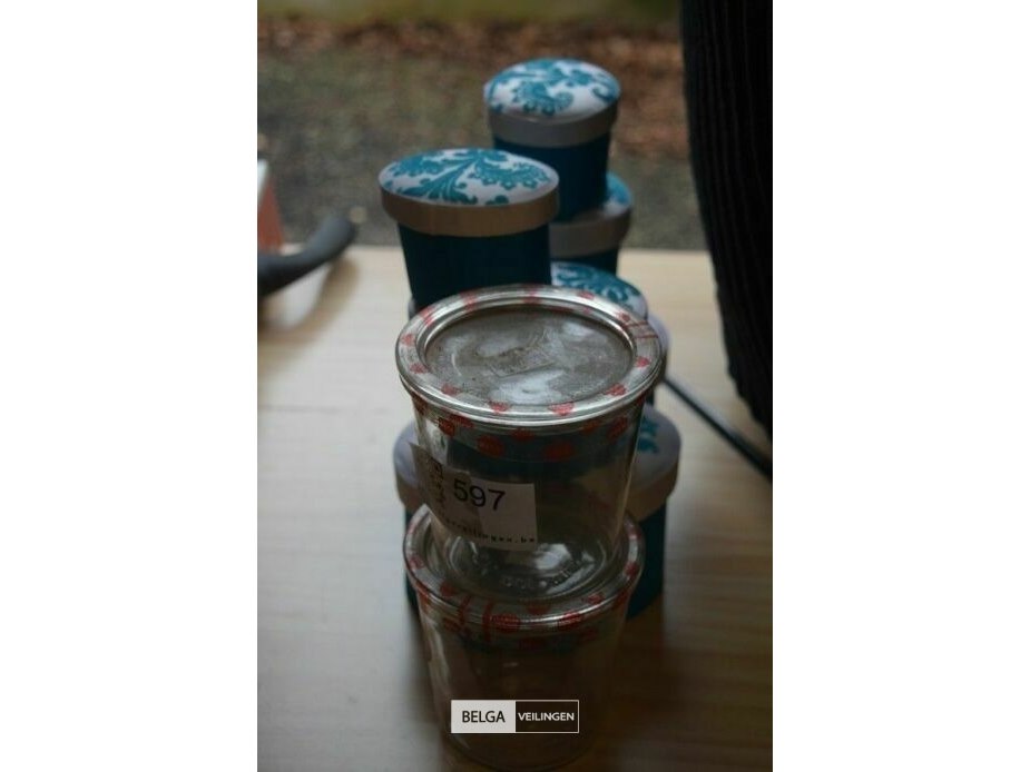 2 st inmaakglazen en 6 st opbergdoosjes
