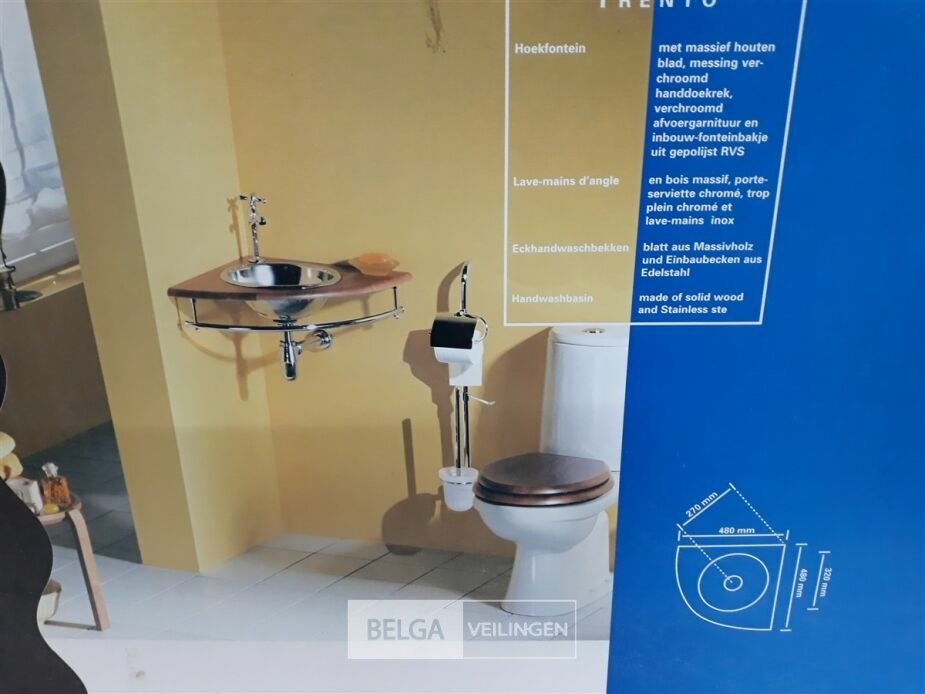 1 x hoekwasbak inox houten blad chrome sifon