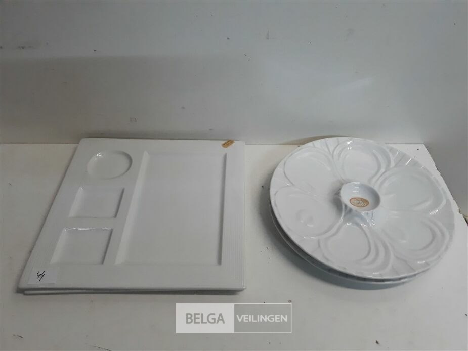 4 x serveerschaal met verdeling 2 x rond + 2 x vierkant