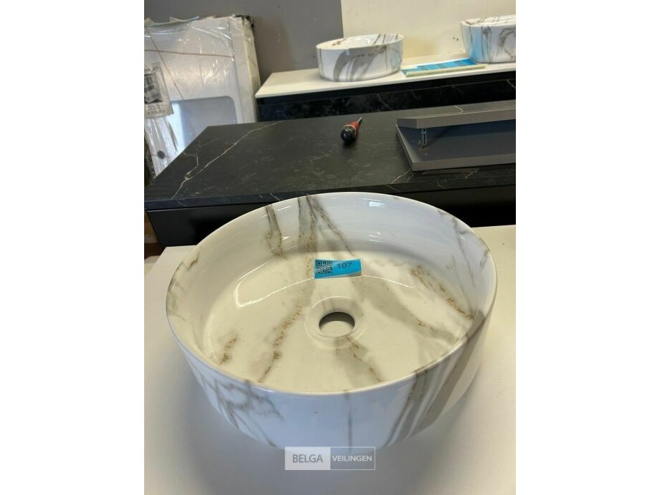 Ceramiek wastafel met marmerlook - afm ø36x12 cm