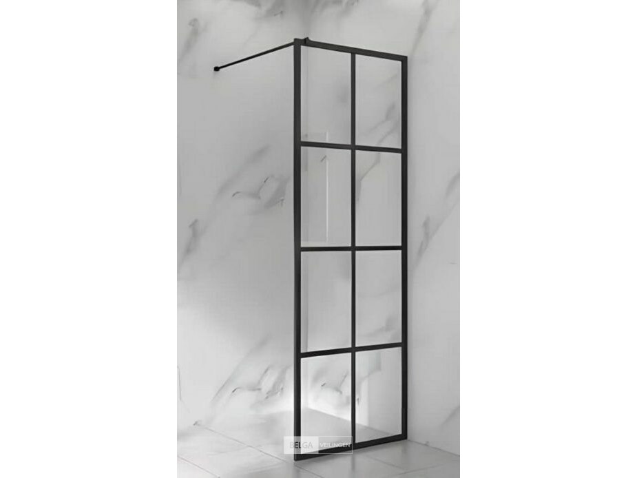 Douchewand glas/alu zwart - 120x190 cm (ref 002)