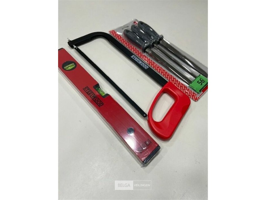 1 x vijlset 3 delig - 1 x ijzezaag - 1x waterpas