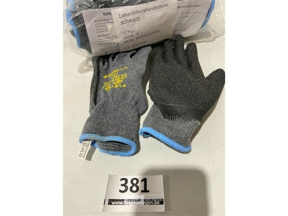 12x werkhandschoen met latex aan binnenzijde maat 9
