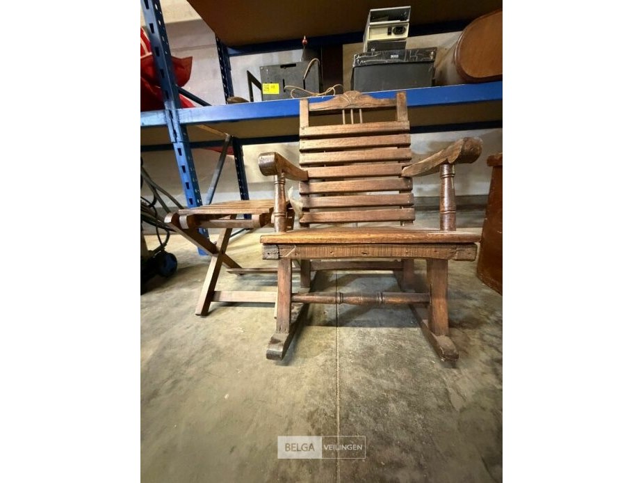 Antieke schommelstoeltje + tafeltje