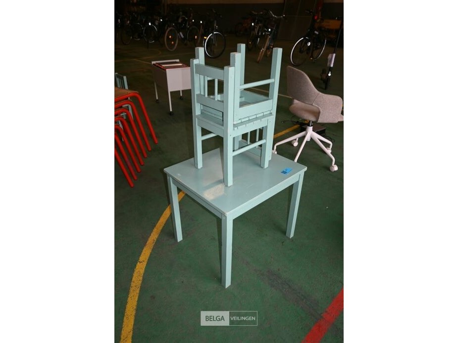 Houten tafeltje + 2 houten kinderstoelen