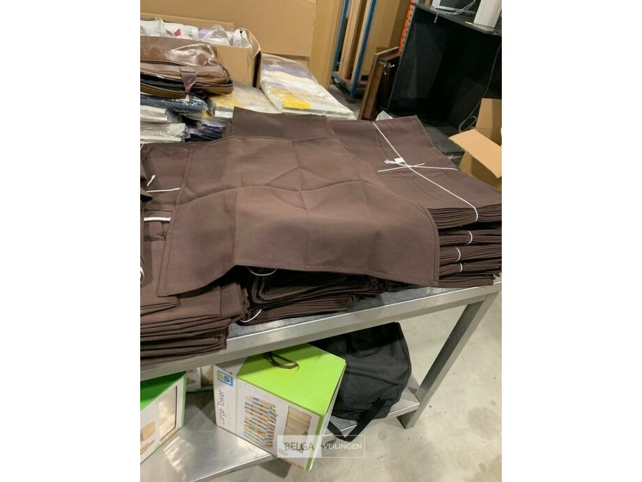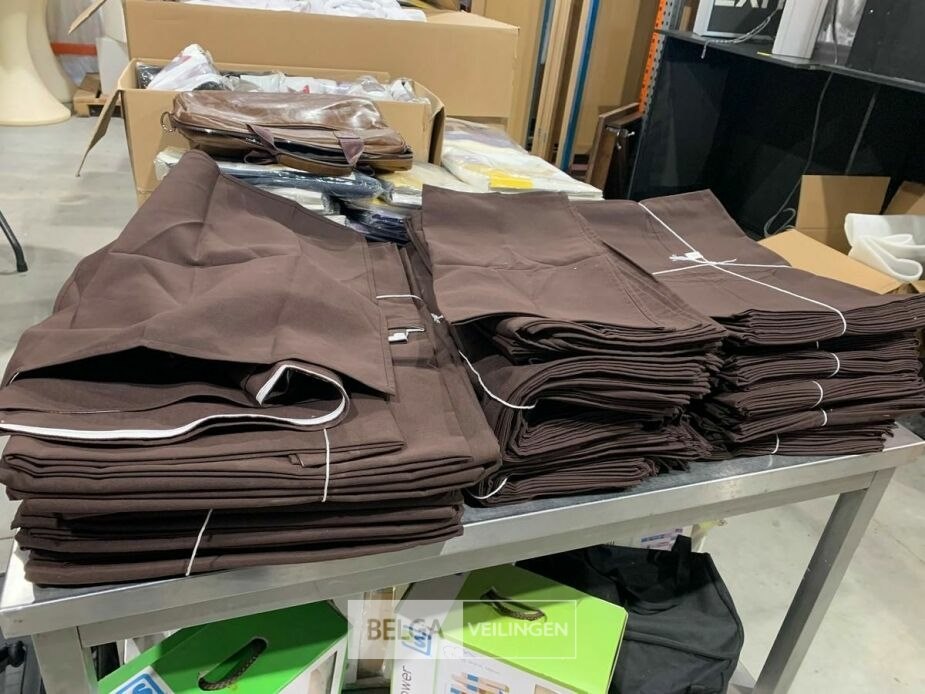 Partij ronde bruine tafellakens en bijhorende tafeldoeken