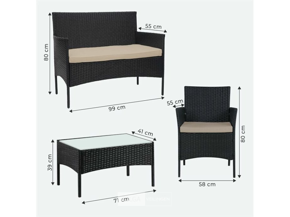 Rattan loungeset jamaica - design wicker tuinset - zwart