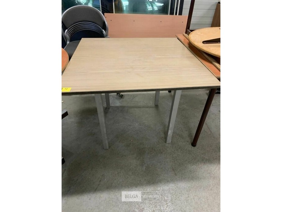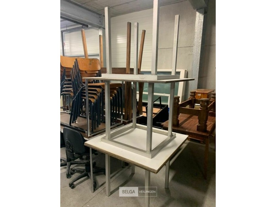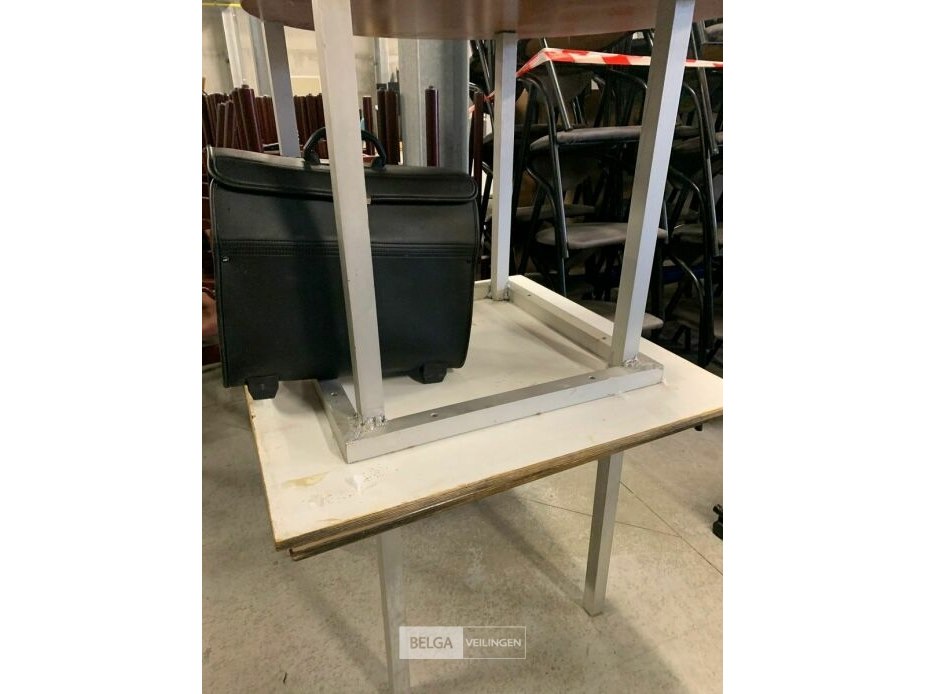 9 tafels met houten bladen en metalen poten