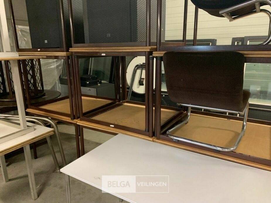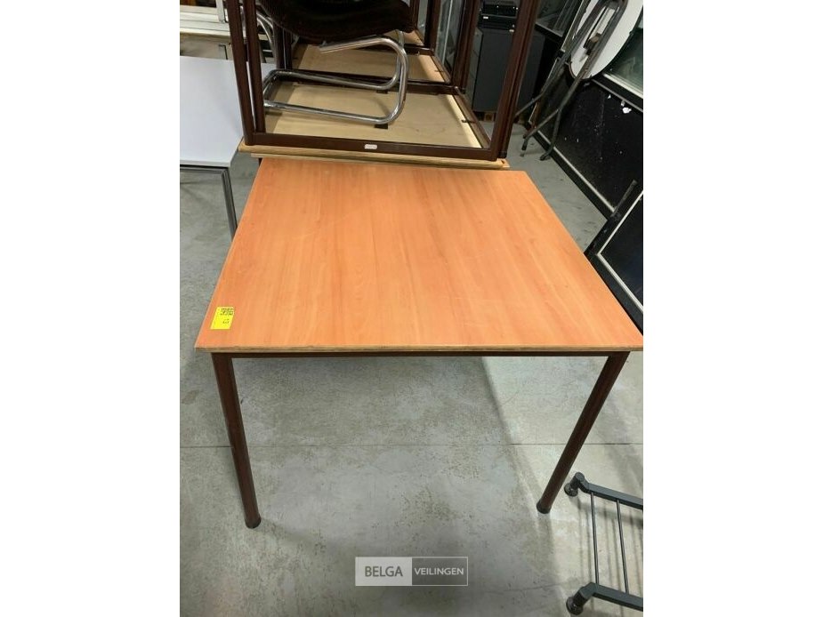 13 tafels met houten bladen en metalen poten
