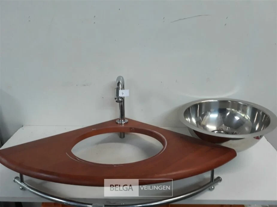 1 x hoekwasbak inox houten blad met kraan showmodel