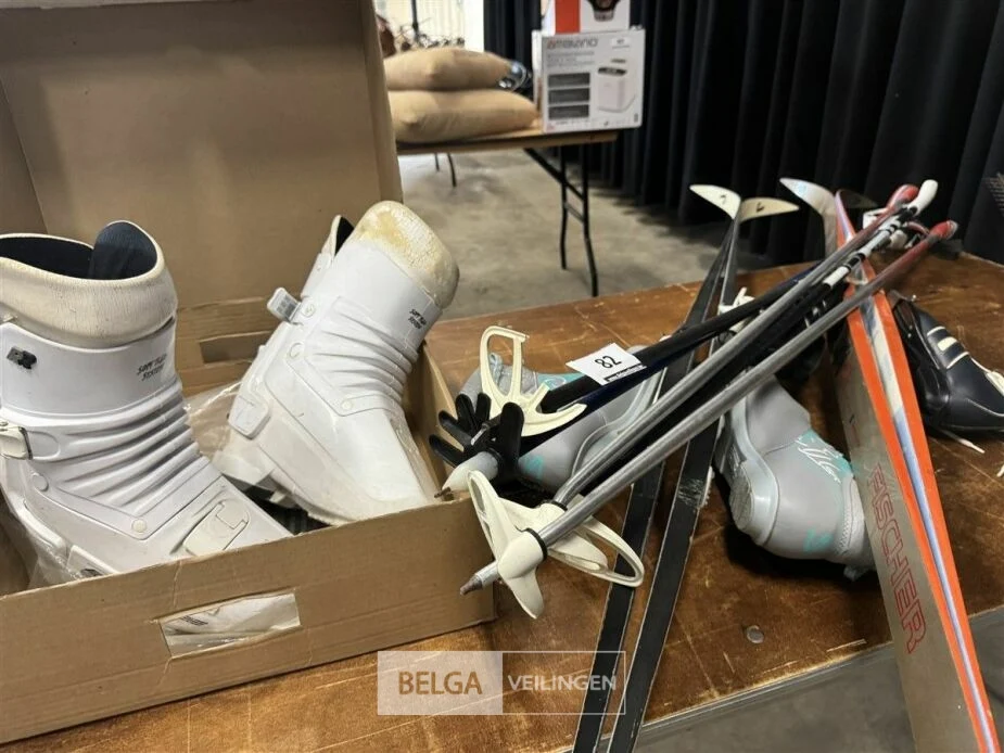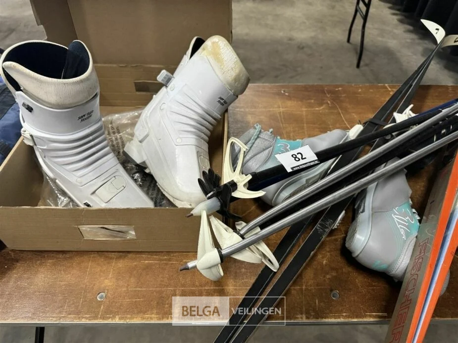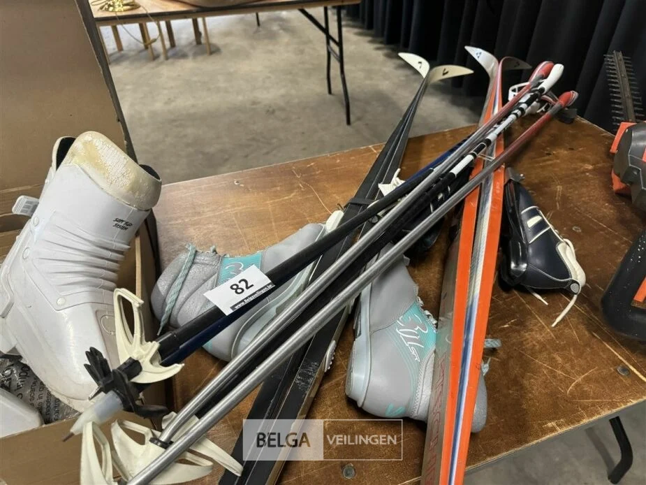 2 paar langlauflatten met schoenen, stokken, 1 paar skibotten