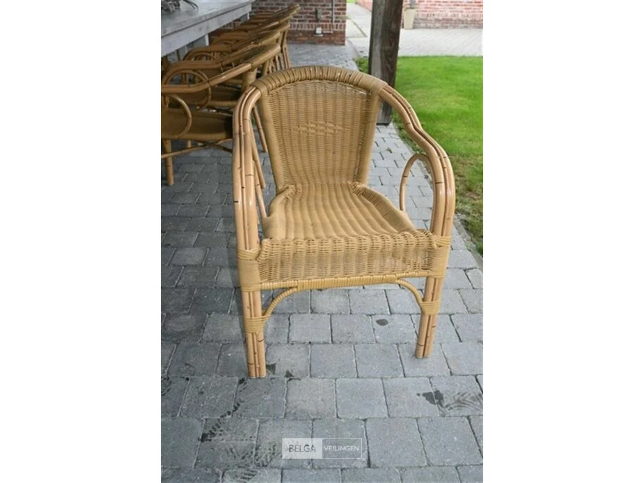 Lange houten tafel met 14 stapelstoelen