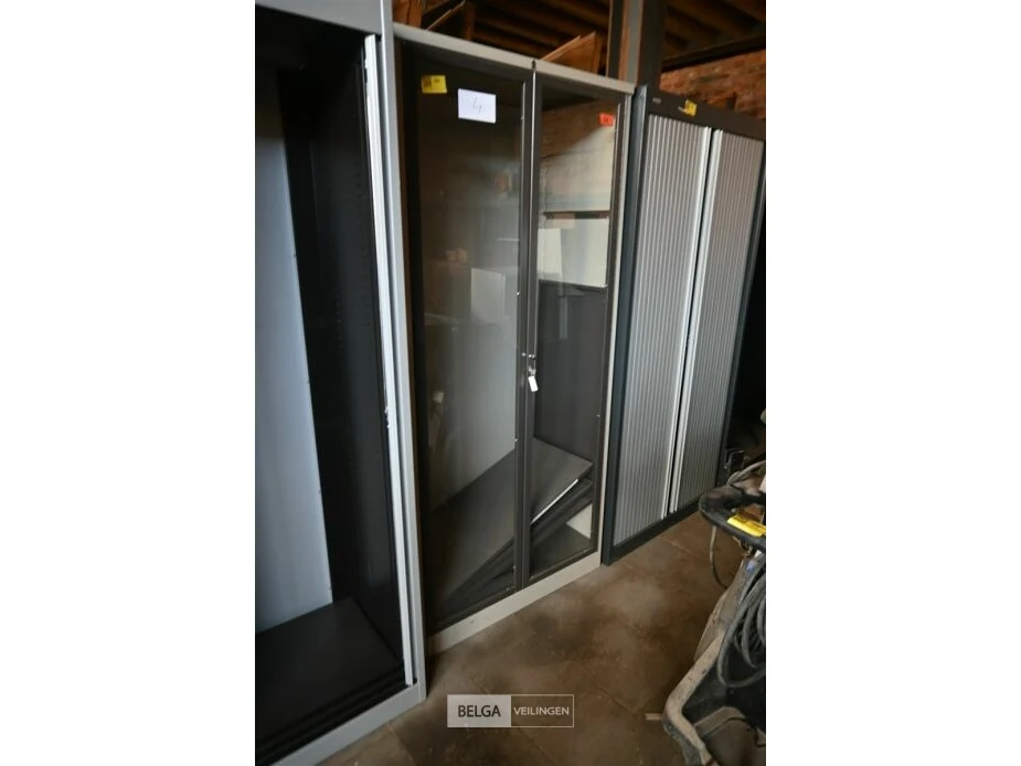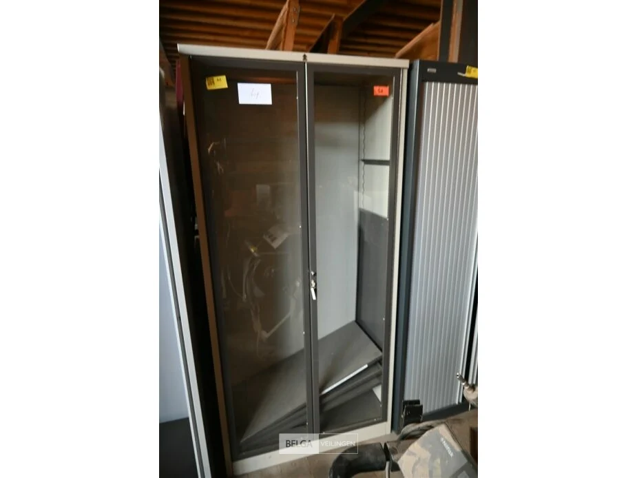 Metalen dossierkast met glazen deuren