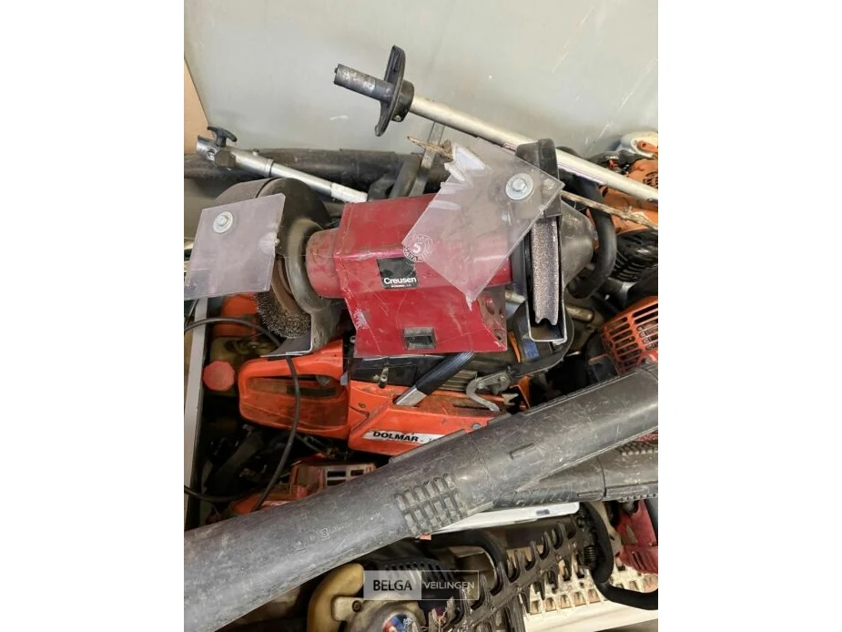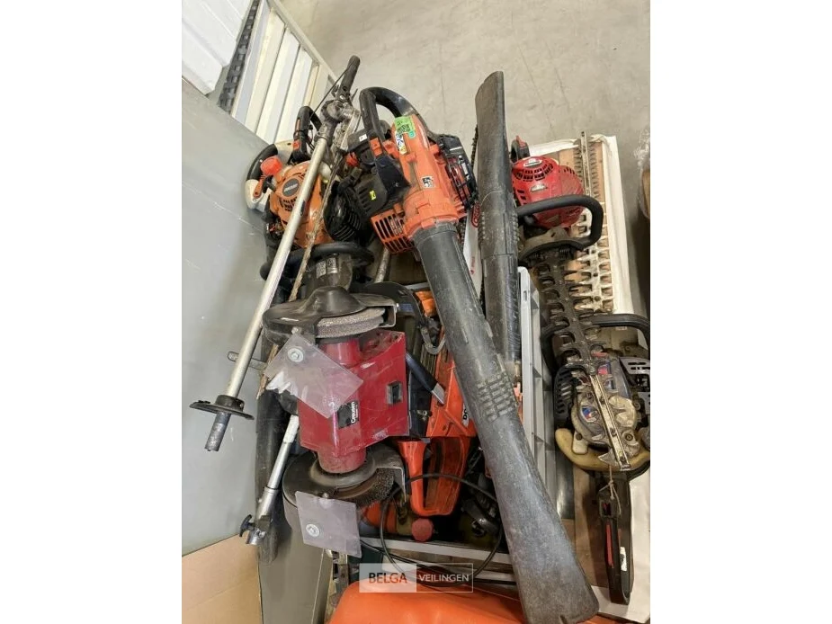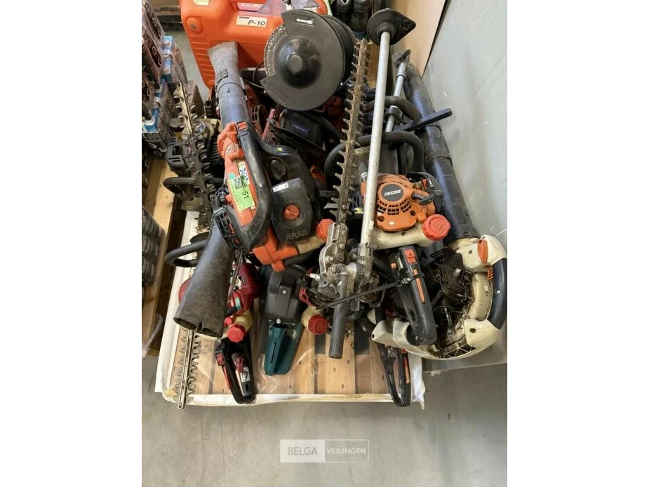 Pallet met div heggescharen, kettingzagen, bladblazer