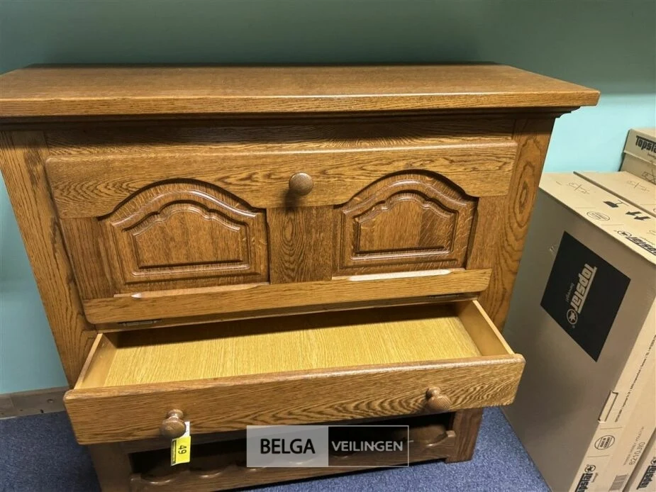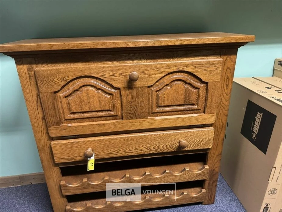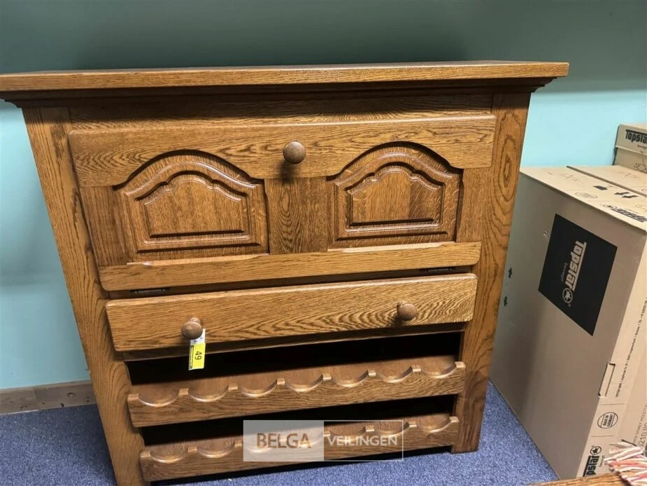 Eiken barkast met flessenrek en 1 lade