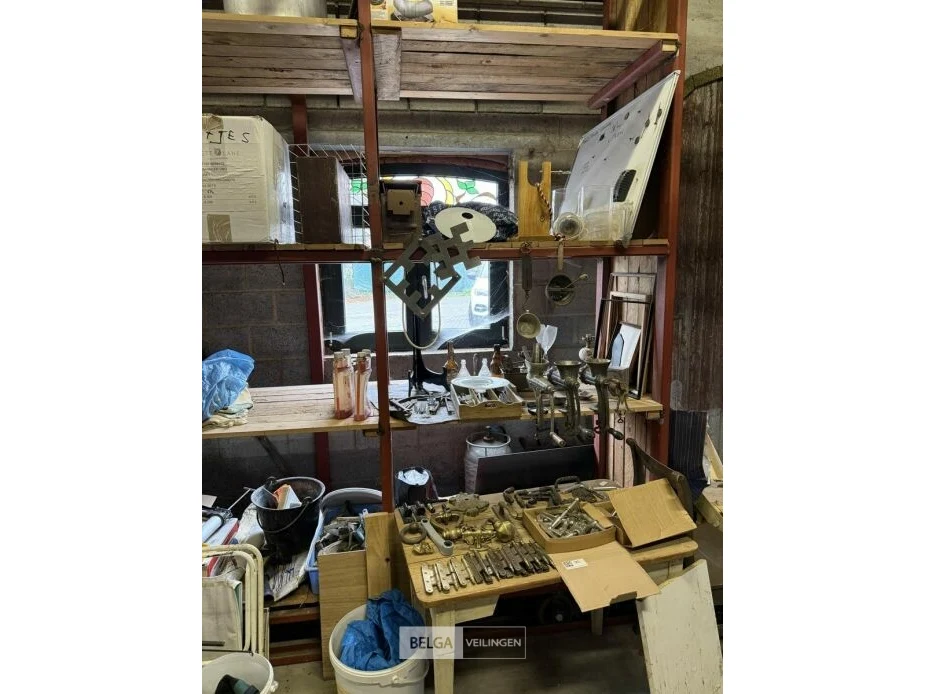 Volledige inhoud rek met tafeltje antiek deurbeslag