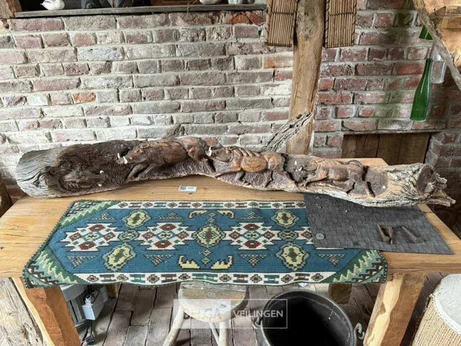 Houtsculptuur met everzwijnen
