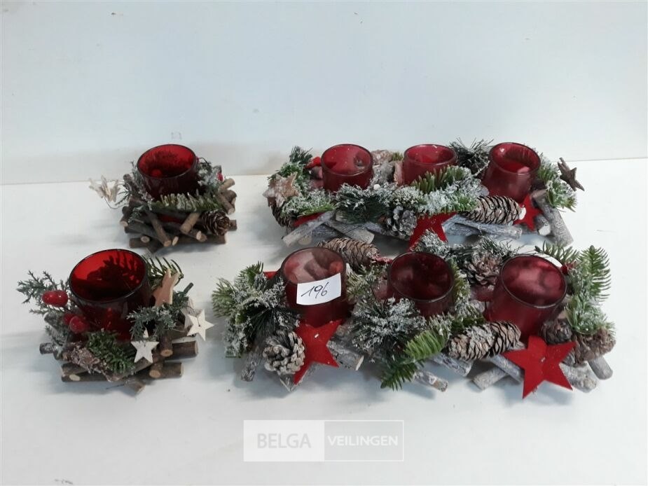 4 x kerststuk met t-licht glasje 2 assorti