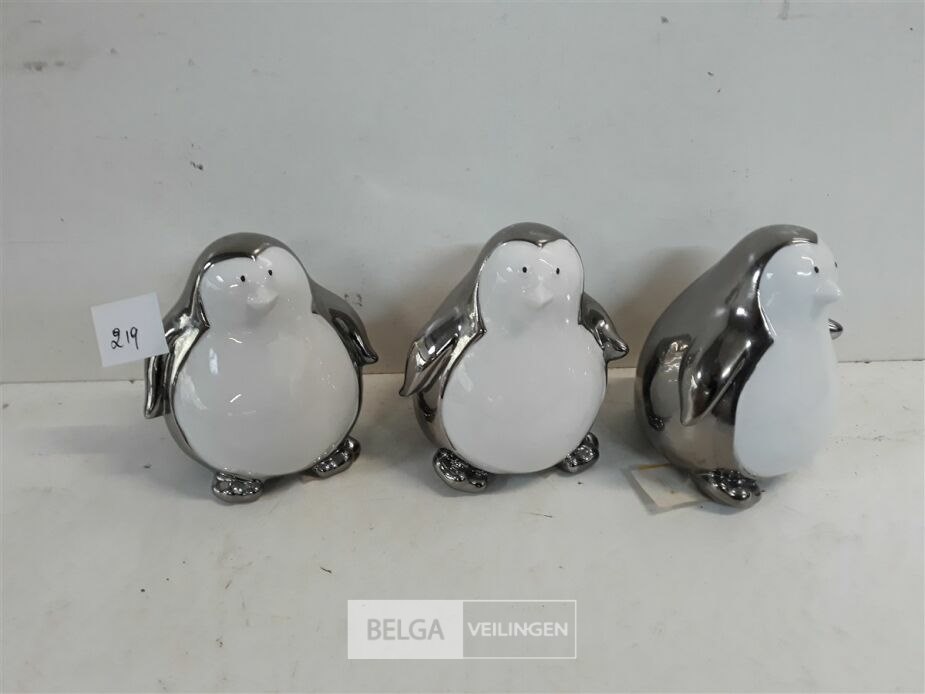 3 x pinguin deco zilver wit 14 cm