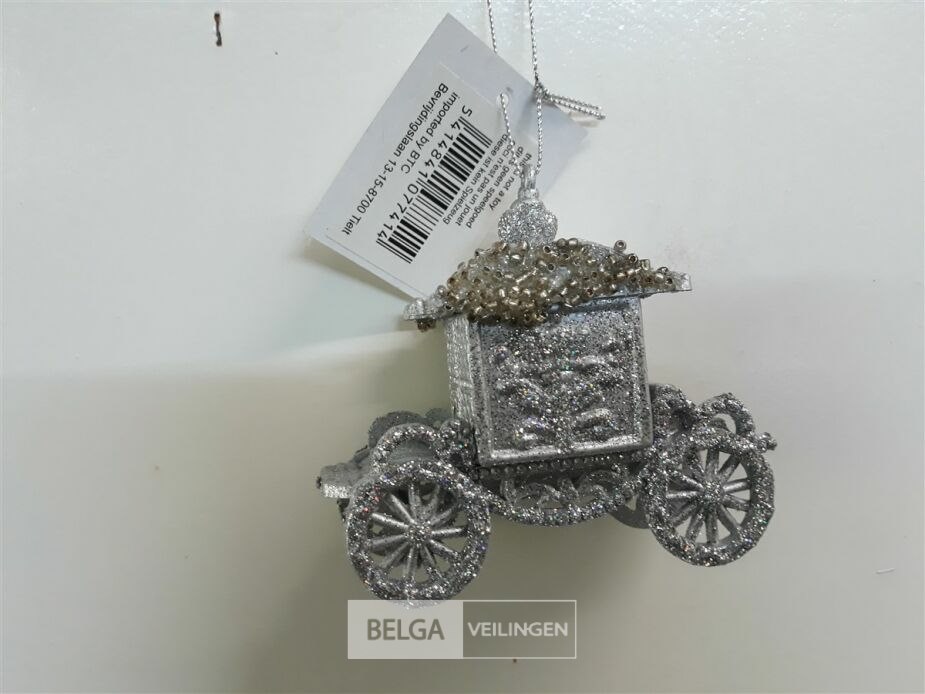 15 x hangdeco pvc koets zilver 2 assorti 9 x 7 cm