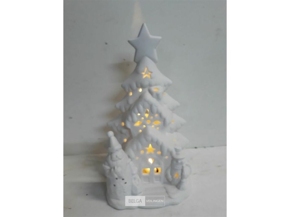 1 x verlicht kersthuis 14x10x24 cm werkt op batterijen