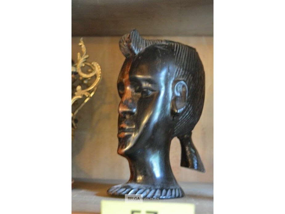 Ebenhout afrikaans beeldhouwwerk van menselijk hoofd