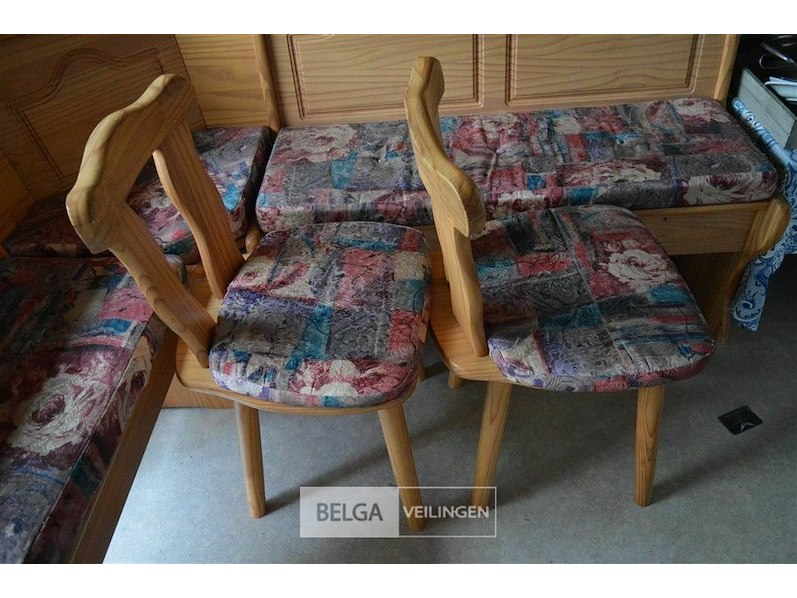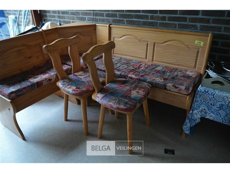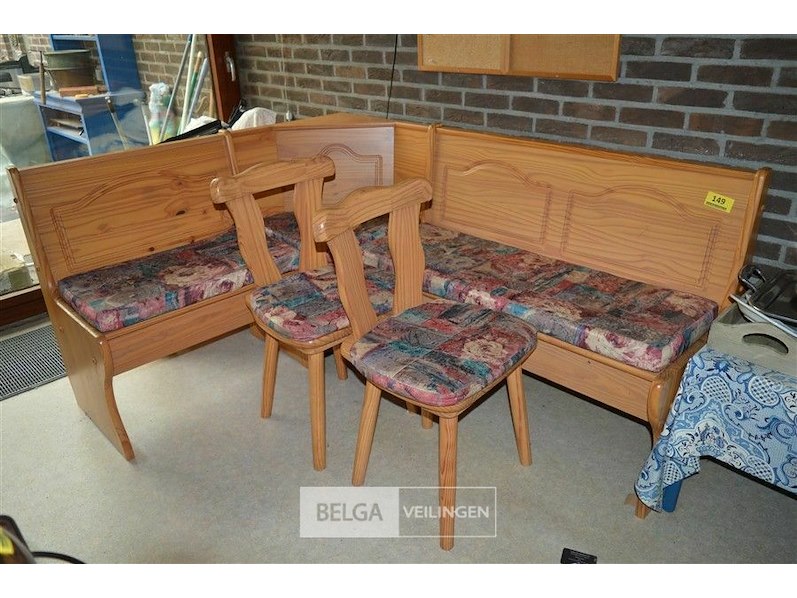 L-hoekige retro keukenbank met 2 stoelen