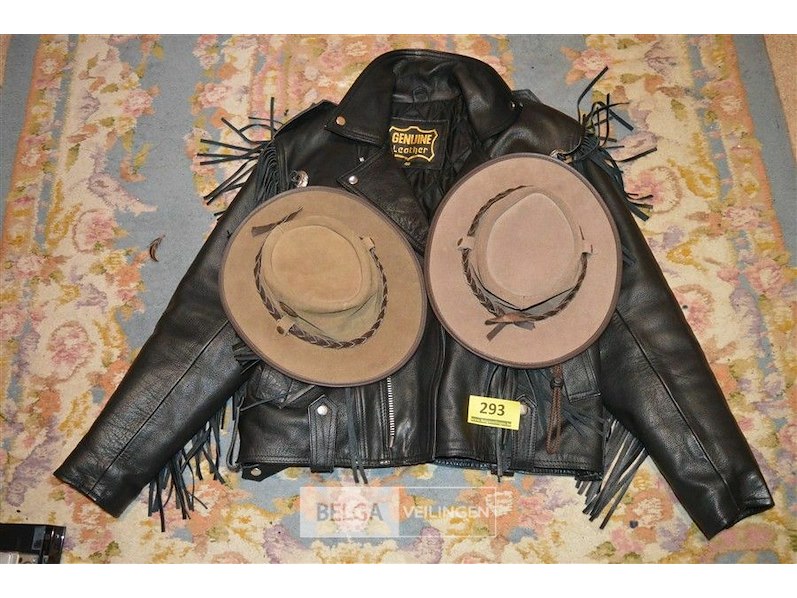 Leren jas en 2 hoeden