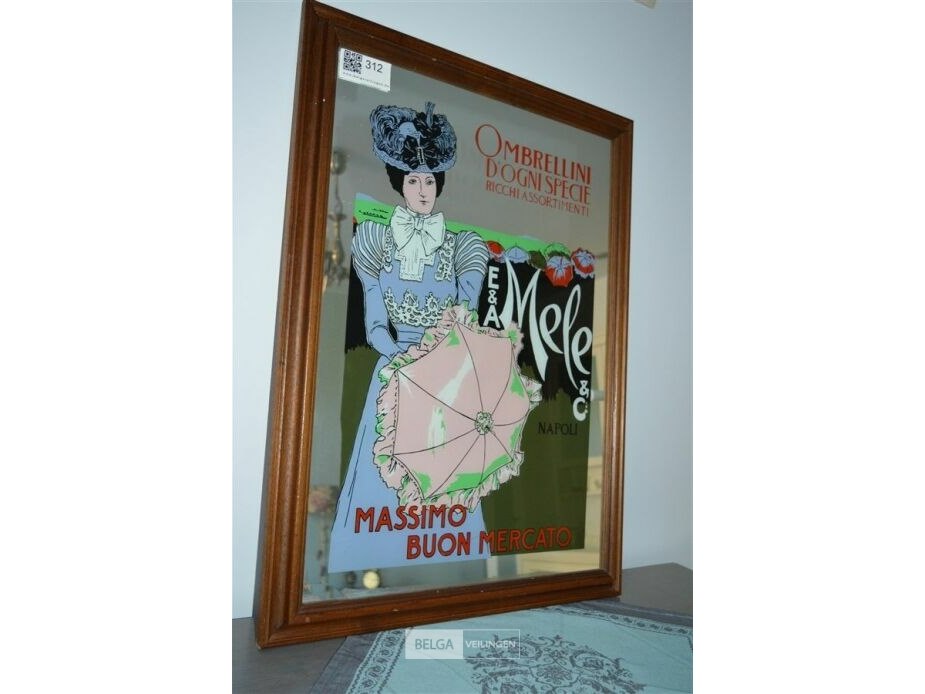 Spiegel met advertentieposter "ombrellini d'ogni specie ricchi assortimenti"